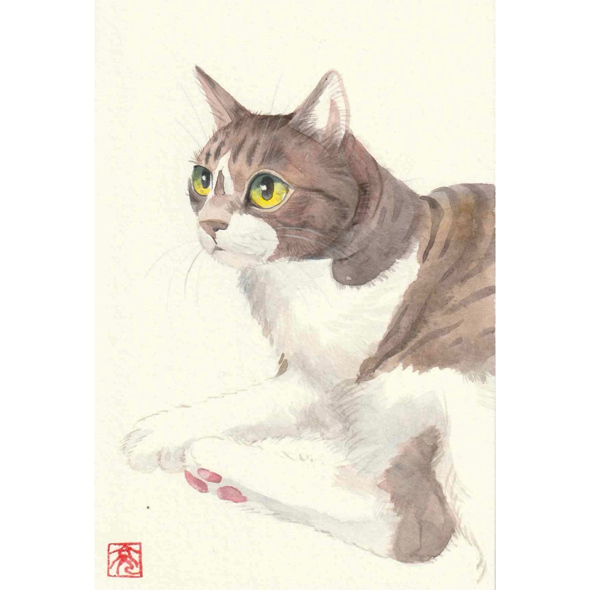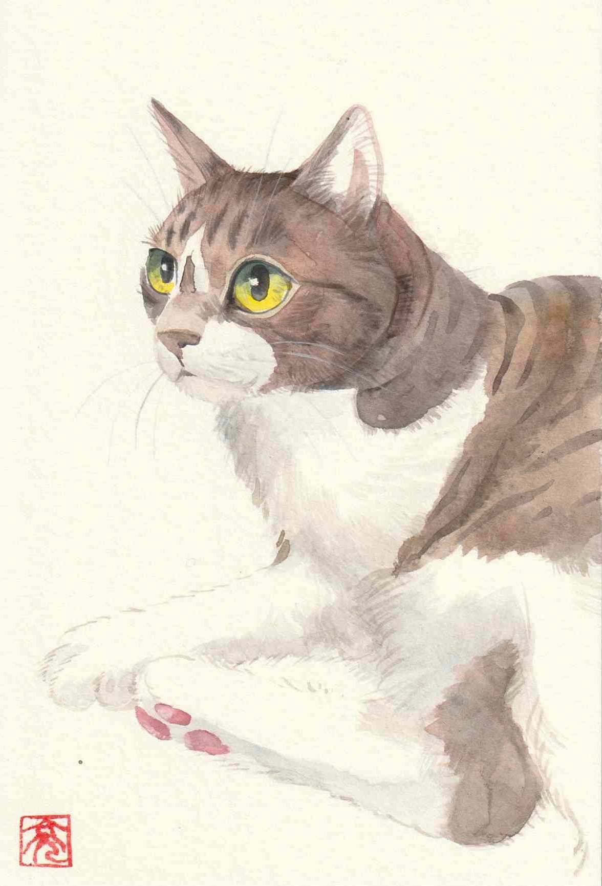 松本亮平 水彩ドローイング キジトラネコ